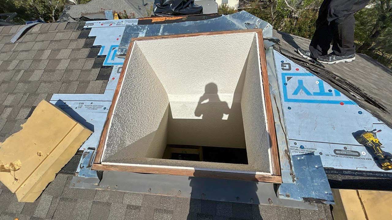 The old, white, acrylic dome skylights have been leaking and causing damage to the drywall. The owner contacted us after an online search. He accepted our quote for replacing the skylights with VELUX skylights with white glass.